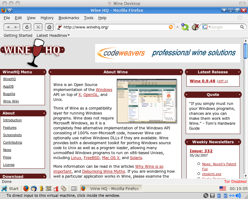 Using the amazing Wine Windows emulator, this LivePC can run Windows programs. This is great because you can now combine the security of the LivePC environment, the availability of Windows software, the freedom of Linux-based Operating systems, and fantastic open-source applications all into one.